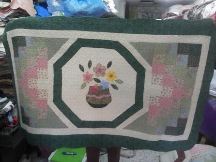พรมผ้าต่อลายปูพื้นขนาด 90*150 ลายกระเช้าดอกไม้